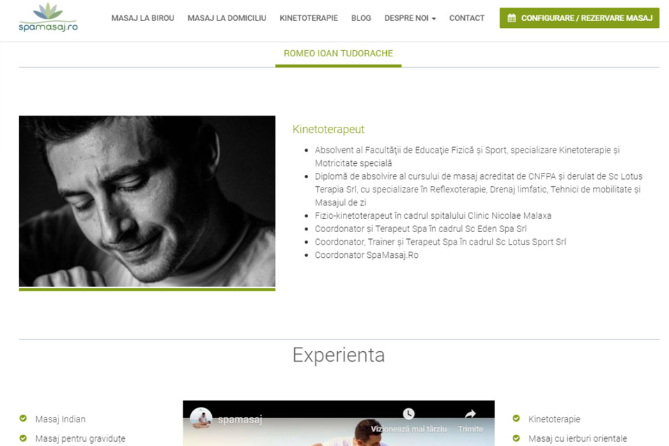 Oferă servicii personalizate de masaj, îmbinând nenumărate tehnici și manevre care compun terapii precum:Tai Yoga Massage, Presopunctura, Stretching sau Shiatsu Massage, dar şi exerciţii din Pilates sau Yoga.